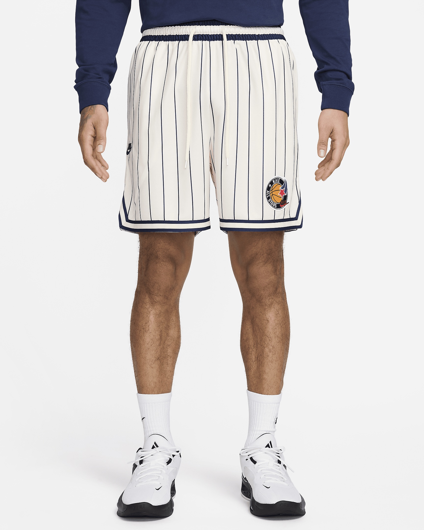 We may design the DNA shorts with basketball in mind, but they're made for so much more. Lightweight and breathable, their knee-length design will also help you run and jump without being held back. The striped edges give a nostalgic hoops feel. Benefits - Nike Dri-FIT technology moves sweat away from your skin for quicker evaporation, helping you stay dry and comfortable. - Double-layered mesh is lightweight and breathable. - Side zippered utility pocket helps hold your valuables, like a phone. Product Details - 6" inseam - Striped elastic waistband with drawcord - Mesh hand pockets - Mid-thigh length - Striped hem tape - 100% polyester - Machine wash - Imported - Shown: Pale Ivory - Style: HF4428-110 SIZE & FIT Model is wearing size M and is 5′11″180cm Loose fit: roomy and relaxed