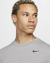 A sweat-wicking legend returns with an updated look and feel. It's soft in all the right ways, with a more relaxed, looser fit than previous versions so you can move through your reps without missing a beat. Benefits - Nike Dri-FIT technology moves sweat away from your skin for quicker evaporation, helping you stay dry and comfortable. - Jersey fabric feels soft and smooth. - We updated the Legend with an easy, more relaxed feel that is slightly looser through the chest, waist and hips. Product Details - Standard fit for a relaxed, easy feel - Ribbed neckband - 100% polyester - Machine wash - Imported - Shown: Tumbled Grey/Flat Silver/Heather/Black - Style: DX0993-063 SIZE & FIT Model is wearing size M and is 6′1″185cm Standard fit: easy and traditional Fits large; we recommend ordering a size down
