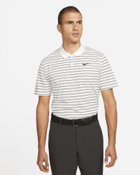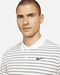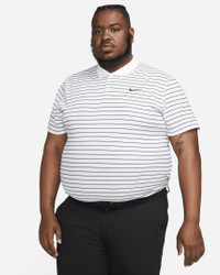 Crafted from striped, sweat-wicking fabric, the Nike Dri-FIT Victory Polo puts a modern spin on golf performance. This product is made with 100% recycled polyester fibers. Benefits - Nike Dri-FIT technology moves sweat away from your skin for quicker evaporation, helping you stay dry and comfortable. - Shoulder seams are rolled forward so you can fully power through your swing. - Collar is ribbed to help prevent curling. Product Details - Standard fit for a relaxed, easy feel - 2-button placket - 100% polyester - Machine wash - Imported - Shown: White/Black - Style: DH0829-100 SIZE & FIT Model is wearing size M and is 6'1"185cm Big & Tall model is wearing size 2XL and is 6'0"183cm Standard fit: easy and traditional
