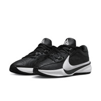 Giannis’ internal engine revs from deep within, requiring a shoe that can harness his superpower abilities. Enter the Giannis Freak 5. Stacked with stunning speed for super-quick first steps, stuffed with that sort of springy cushioning that can withstand the all-game grind, his signature shoe lets you feel the like the Greek Freak. Blow past your opponent en route to the rim, while sticking with quick-twitch ball-handlers when a defensive stand decides the game. Hit the Gas:A top-loaded Zoom Air unit in the forefoot provides energy return and responsiveness, putting force into your first step so you can go from the perimeter to the rim with ease. Stay Contained:For all that force and velocity, Giannis needs a design that stays with him, no matter what the defense throws at him. Our internal containment system gives you a more dynamic fit system that limits movement inside the shoe without feeling constricting. Comfort for 4 Quarters:Springy foam midsole has a responsive underfoot ride. It adds a soft, comfortable sensation to help keep you moving and energized all game long. Stick and Cut:Advanced traction in the heel enhances your on-court feel. It helps you stick to the ground for a microsecond while the other directional traction helps you dig your toe in and toe out of it. Style: DZ2946; Color: Black/Black/White; Size: 6.5; Gender: Male; Age Group: Adult | Nike Giannis Freak 5 (Team) Basketball Shoes in Black, Size: 6.5 | DZ2946-001