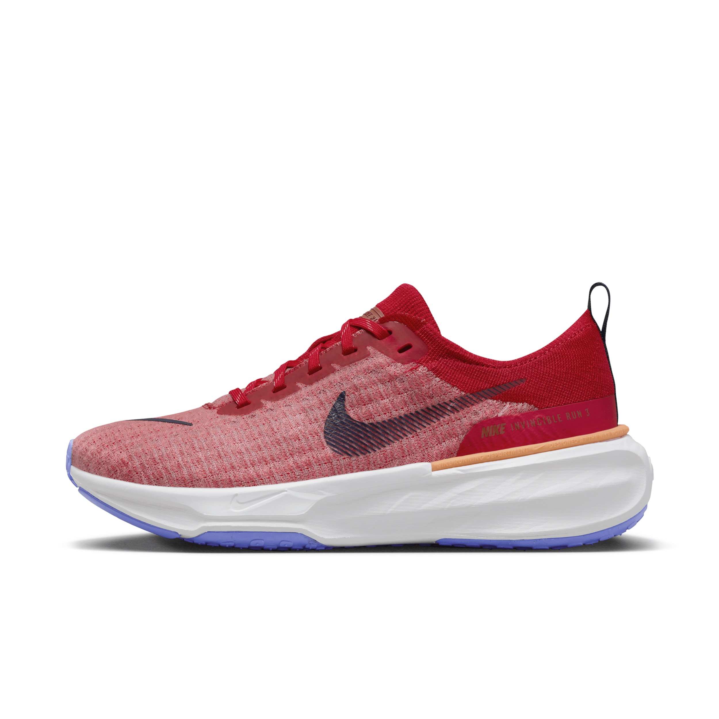 Maximum cushioning provides our most comfortable ride for everyday runs. Experience a breathable Flyknit upper and the robust platform of lightweight ZoomX foam that softens impact. Plus, the midsole of this model is wider and taller than the last for even more cushioned comfort. Benefits - Breathable Flyknit upper for a secure fit without bulk - High and wide ZoomX foam midsole cushions on impact - Waffle outsole for durable traction - Extra cushioning around contact points around the heel and tongue - What’s New? A wider and taller ZoomX foam midsole for maximum comfort and sleek all-around design updates. Product Details - Weight: Approx. 309g/ 10.9oz (Men's US 10) - Heel-to-toe drop: 9mm - Not intended for use as Personal Protective Equipment (PPE) - Shown: University Red/Blue Joy/Rugged Orange/Midnight Navy - Style: DR2615-600