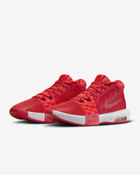 When you step on the floor, what kind of performance do you want to put on? Stop the show in these LeBron Witness 8’s, and let them know there are no limits to your flair and full-scale skills. This sleek and boldly sculpted shoe offers stability when exploding and soft landings when you come back to the ground, allowing kingpins like you and LeBron to bound, brake and bolt from baseline to baseline. Product Details - Padded collar - Diamond-stitched quilted tongue - Shown: Light Crimson/Bright Crimson/Gym Red/White - Style: FB2239-600 SIZE & FIT Fits small; we recommend ordering a half size up