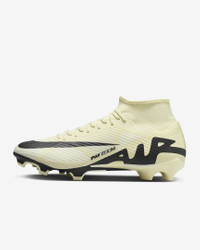 Instantly tilt the field in the bold design of the Superfly 9 Academy MG. It's loaded with a Zoom Air unit and flexible NikeSkin up top for exceptional touch, so you can dominate in the waning minutes of a match—when it matters most. Fast is in the Air. Product Details - For use on natural and synthetic surfaces - Cushioned insole - Shown: Lemonade/Black - Style: DJ5625-700 SIZE & FIT Contoured: designed for a contoured fit, enabng a barefoot boot-to-ball sensation and enhanced lockdown Snug fit; if you prefer a sghtly looser fit, we recommend ordering a half-size up