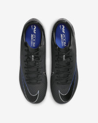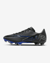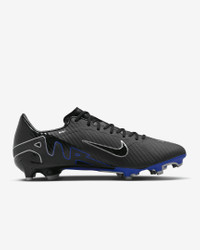 The field is yours when you lace up in the Vapor 15 Academy MG. It's loaded with a Zoom Air unit and flexible NikeSkin up top for exceptional touch, so you can dominate in the waning minutes of a match—when it matters most. Fast is in the Air. Product Details - For use on natural and synthetic surfaces - Cushioned insole - Shown: Black/Hyper Royal/Chrome - Style: DJ5631-040 SIZE & FIT Contoured: designed for a contoured fit, enabng a barefoot boot-to-ball sensation and enhanced lockdown Snug fit; if you prefer a sghtly looser fit, we recommend ordering a half-size up
