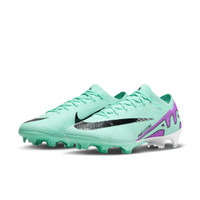LOOK FAST, FEEL FASTER. The field is yours when you lace up in the Vapor 15 Elite FG. We added a Zoom Air unit, made specifically for soccer, and grippy texture up top for exceptional touch, so you can dominate in the waning minutes of a match—when it matters most. Feel the explosive speed as you race around the field, making the critical plays with velocity and pace. Fast is in the Air. Welcome to the Field, Zoom:For the first time in our history, Nike has developed an all-new, soccer-specific 3/4 Zoom Air unit. It sits in the plate and provides an additional level of springy underfoot feel that helps you move faster on the field and create separation when it matters the most—whether you're scoring goals, being first to the ball or going by defenders. Drive Your Speed:The speed cage inside of the structure is made of a thin but strong material that secures the foot to the outsole without adding additional weight for optimal lockdown. Dig In, Take Off:Tri-star studs provide multidirectional traction with every step, so you can change directions quickly and confidently. Heel studs provide traction and stability when braking. Toe-off center studs give you traction during explosive starts. Improved Fit:A redone design improves the fit, so that it better simulates the foot. We did this by conducting multiple wear tests on hundreds of athletes. The result is a more contoured toe box and better lockdown in the heel. Feel the Ball:The upper is made of Vaporposite+, which combines a grippy, grid mesh with a premium material for optimal ball control at high speeds. The material provides a tactile feel across the surface of the upper. It’s soft, but stable and wraps tightly around your foot, giving you a more natural on-ball feel when dribbling, passing or scoring. Product Details:For use on slightly wet, short-grass fields. Cushioned insole. Style: DJ4978; Color: Hyper Turquoise/Black/White/Fuchsia Dream; Size: 6.5; Gender: Male; Age Group: Adult | Nike Mercurial Vapor 15 Elite Firm Ground Low-Top Soccer Cleats in Green, Size: 6.5 | DJ4978-300
