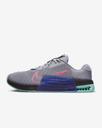 Whatever your "why" is for working out, the Metcon 9 makes it all worth it. We improved on the 8 with a larger Hyperlift plate and added rubber rope wrap. Sworn by some of the greatest athletes in the world, intended for lifters, cross trainers, go-getters and it’s still the gold standard that delivers day after day. More Benefits - Full rubber outsole provides durable traction for dynamic movements like cleans and walking lunges. - Breathable textile has a haptic print, which creates a 3-D effect that adds durability and texture, helping make it easier to keep your shoes clean. Also, it sports flexible, durable support in the toe area, so that when your toes splay when lifting heavy weights, it won’t feel restrictive. Product Details - Shown: Cement Grey/Black/Concord/Hot Punch - Style: DZ2617-006