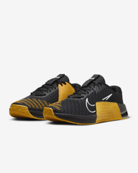 Whatever your "why" is for working out, the Metcon 9 makes it all worth it, with a larger Hyperlift plate, added rubber rope wrap and updated foam. Sworn by some of the greatest athletes in the world, intended for lifters, trainers, go-getters, it’s still the gold standard that delivers day after day. More Benefits - Full rubber outsole provides durable traction for dynamic movements like cleans and walking lunges. - Breathable textile has a haptic print, which creates a 3-D effect that adds durability and texture and helps make it easier to keep your shoes clean. Product Details - Shown: Black/University Gold/Smoke Grey/White - Style: FD5431-004