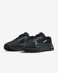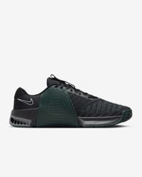 Whatever your "why" is for working out, the Metcon 9 makes it all worth it, with a larger Hyperlift plate, added rubber rope wrap and updated foam. Sworn by some of the greatest athletes in the world, intended for lifters, trainers, go-getters, it’s still the gold standard that delivers day after day. More Benefits - Full rubber outsole provides durable traction for dynamic movements like cleans and walking lunges. - Breathable textile has a haptic print, which creates a 3-D effect that adds durability and texture and helps make it easier to keep your shoes clean. Product Details - Shown: Black/Pro Green/Smoke Grey/White - Style: FD5431-015