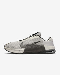 Whatever your "why" is for working out, the Metcon 9 makes it all worth it. We improved on the 8 with a larger Hyperlift plate and added rubber rope wrap. Sworn by some of the greatest athletes in the world, intended for lifters, cross trainers, go-getters and it’s still the gold standard that delivers day after day. More Benefits - Full rubber outsole provides durable traction for dynamic movements like cleans and walking lunges. - Breathable textile has a haptic print, which creates a 3-D effect that adds durability and texture, helping make it easier to keep your shoes clean. Also, it sports flexible, durable support in the toe area, so that when your toes splay when lifting heavy weights, it won’t feel restrictive. Product Details - Shown: Light Iron Ore/Black/Flat Pewter - Style: DZ2617-004