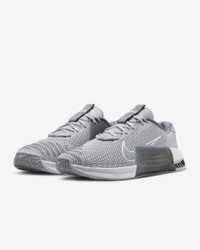 Whatever your "why" is for working out, the Metcon 9 makes it all worth it. We improved on the 8 with a larger Hyperlift plate and added rubber rope wrap. Sworn by some of the greatest athletes in the world, intended for lifters, cross trainers, go-getters and it’s still the gold standard that delivers day after day. More Benefits - Full rubber outsole provides durable traction for dynamic movements like cleans and walking lunges. - Breathable textile has a haptic print, which creates a 3-D effect that adds durability and texture, helping make it easier to keep your shoes clean. Also, it sports flexible, durable support in the toe area, so that when your toes splay when lifting heavy weights, it won’t feel restrictive. Product Details - Shown: Light Smoke Grey/Photon Dust/White/White - Style: DZ2617-002