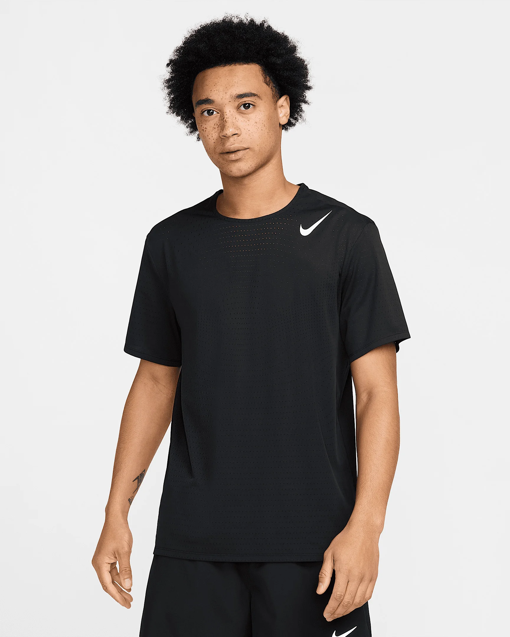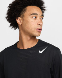 Built for speed, the AeroSwift collection is our pinnacle racing gear. This sweat-wicking engineered-knit top is lightweight and ultra-breathable to help keep you cool through the finish line. Benefits - Nike Dri-FIT ADV technology combines moisture-wicking fabric with advanced engineering and features to help you stay dry and comfortable. - Engineered knit fabric is lightweight and breathable. - Bonded seams at the shoulder reduce bulk for a lighter feel. - Swoosh logos have a non-reflective finish that won't catch flash photography during the race. Product Details - 100% polyester - Machine wash - Imported - Shown: Black/Summit White - Style: HJ3377-010 SIZE & FIT Model is wearing size M and is 6′1″185cm Standard fit: easy and traditional
