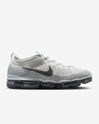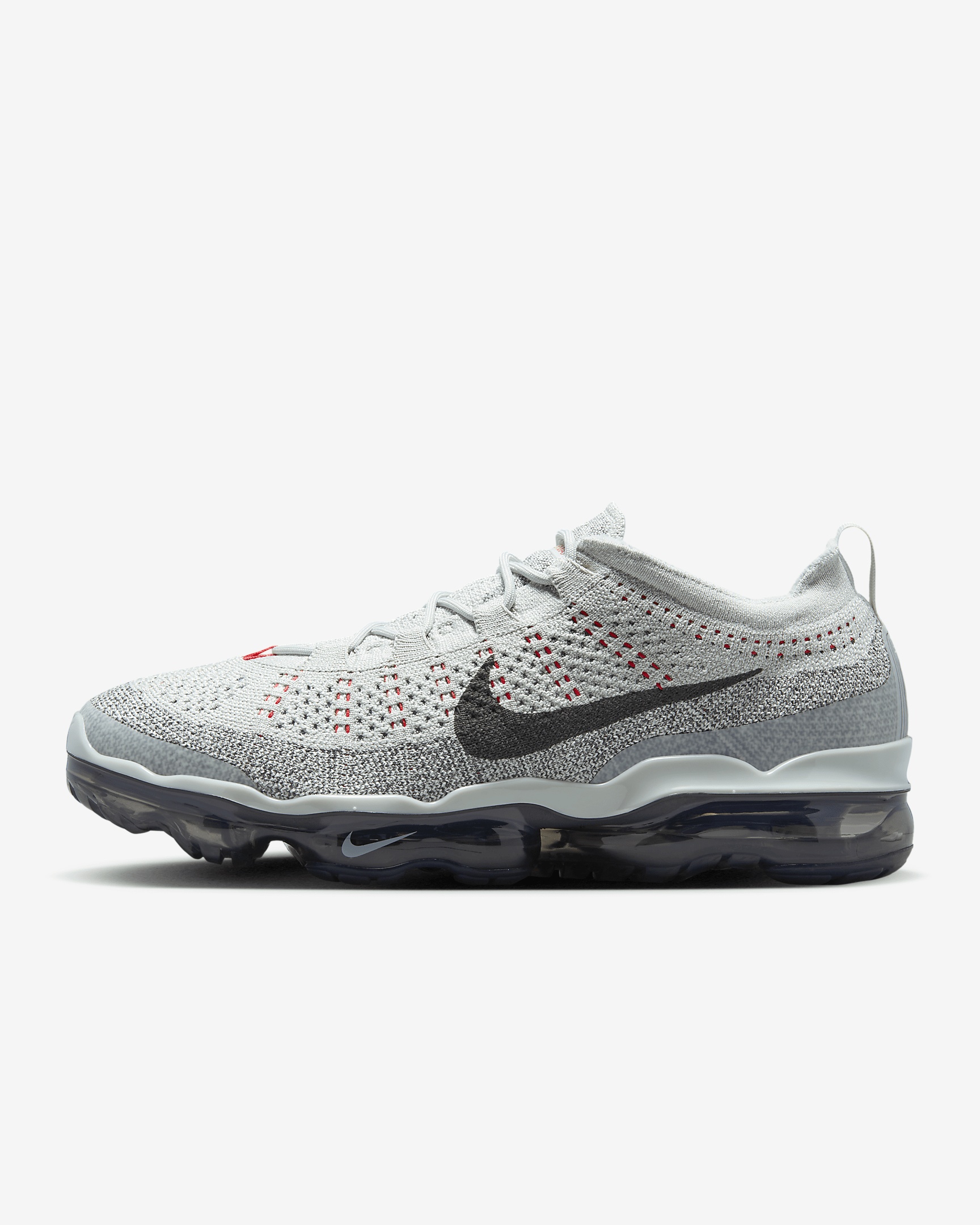 Have you ever walked on Air? Step into the Air VaporMax 2023 to see how it's done. The innovative tech is revealed through the perforated sockliner (pull it out to see more). The stretchy Flyknit upper is made with at least 20% recycled content by weight. More Benefits - The first 1-piece Air unit to run the entire length of a shoe, it allows for smoother transitions and adds unbelievable cushioning. - Seamless collar sculpts the ankle and helps reduces hot spots. Product Details - Rubber outsole - Traditional lacing - Not intended for use as Personal Protective Equipment (PPE) - Shown: Light Silver/Picante Red/Anthracite/Smoke Grey - Style: DV1678-013