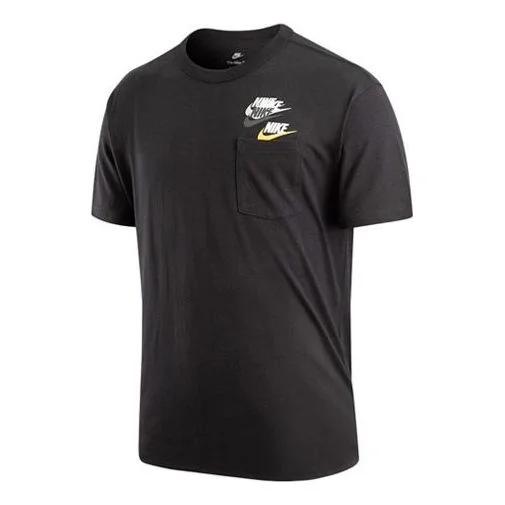 Men's Nike As Nsw Tee Prem Pocket Casual Breathable Round Neck Logo Solid Color Short Sleeve Black T