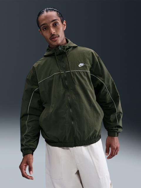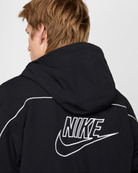 This retro-inspired jacket channels the clean, cool look of Club. Its lightweight nylon build feels roomy through the body for easy movement and layering. Benefits - A mesh lining improves breathability to help keep you feeling fresh. - The double-layer hood construction adds shape and structure. Product Details - Embroidered Nike Futura logo - Hand pockets - Elastic openings - Body: 100% Nylon. Mesh/Panels lining: 100% polyester - Machine wash - Imported - Shown: Black/White/White - Style: HJ2012-010 SIZE & FIT Model is wearing size M and is 6′0″183cm Loose fit: roomy and relaxed