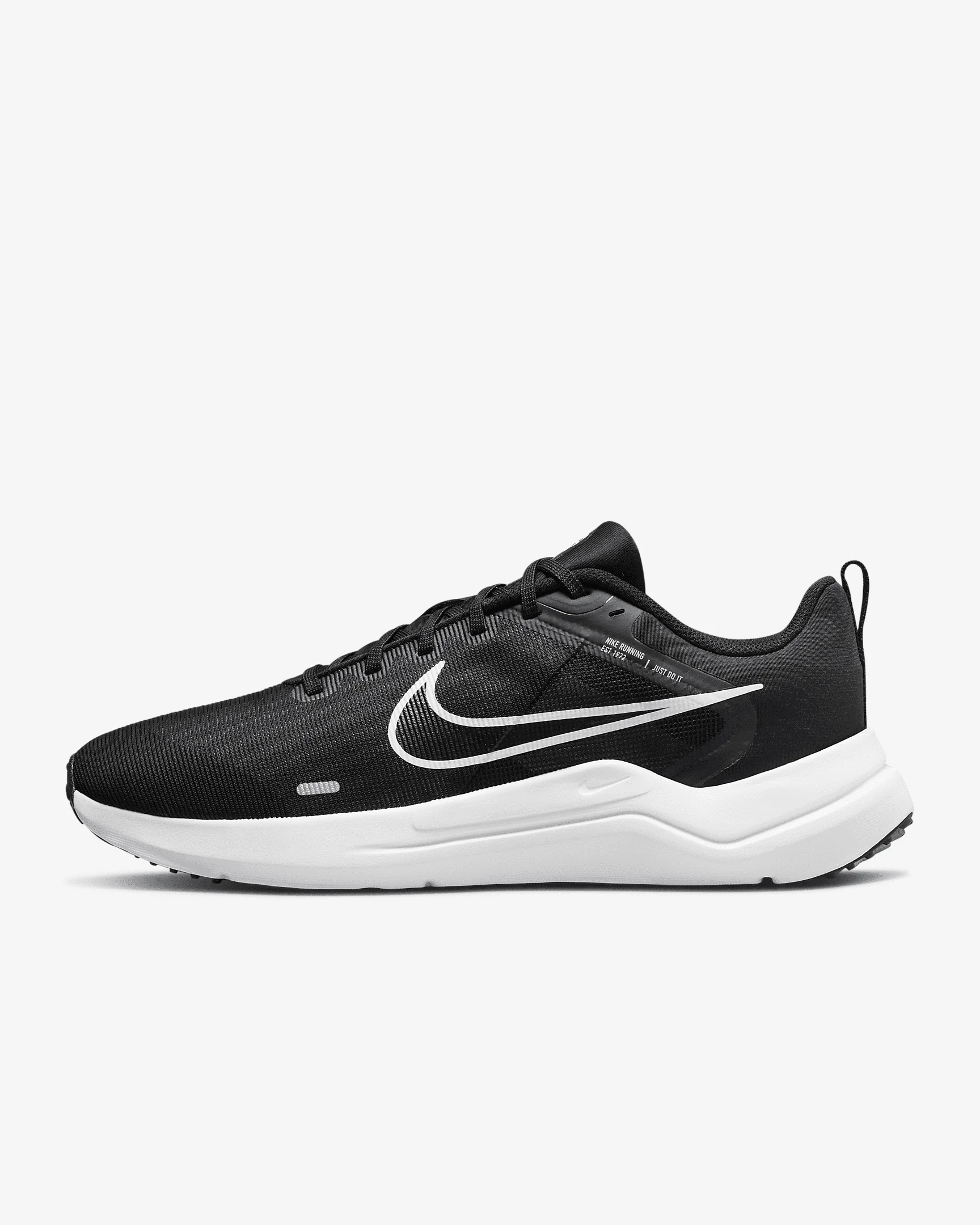 Take those first steps on your running journey in the Nike Downshifter 12. Made from at least 20% recycled content by weight, it has a supportive fit and stable ride, with a lightweight feel that easily transitions from your workout to hangout. Your trek begins. Lace up and hit the road. More Benefits - The rubber outsole has the traction to help keep your feet gripped to the pavement. - Skins at the toes and eyelets offer durability. - A mesh material shows off the internal components at the midfoot and toe. Product Details - Not intended for use as Personal Protective Equipment (PPE) - Shown: Black/Dark Smoke Grey/Pure Platinum/White - Style: DD9293-001