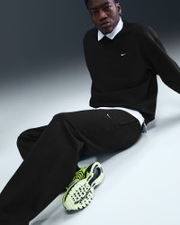 Warm and structured, these pants are crafted with a heavyweight brushed fleece that feels plush on the inside and smooth on the outside. The loose fit and open hem create a casual, relaxed feel. Benefits - Loose fit feels roomy through the seat and thighs. - Elastic waistband has an internal drawcord to let you find the right fit. - Open hem rests on the shoes. Product Details - Embroidered Nike Swoosh logo - Body: 84-85% cotton/15-16% polyester; Pocket bags: 100% cotton. - Material percentages may vary. Check label for actual content. - Machine wash - Imported - Shown: Black/Black/White - Style: HV1090-010 SIZE & FIT Model is wearing size M and is 6′3″189cm Loose fit: roomy and relaxed