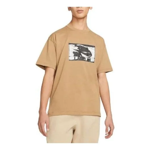 Men's Nike Pattern Printing Round Neck Pullover Short Sleeve Khaki T-Shirt DR5758-258