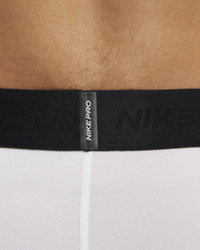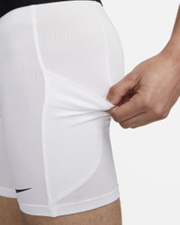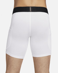 The Nike Pro collection is about feeling confident in trying your best. These shorts have a smooth and stretchy feel that's made to perform for all your favorite sports and exercises. Benefits - Nike Dri-FIT technology moves sweat away from your skin for quicker evaporation, helping you stay dry and comfortable. - Stretchy knit fabric gives a body-hugging feel so you can move naturally through your workouts and exercises. - Soft and stretchy waistband sits snug above your hips. - Side pocket helps store a small item, like your keys and card. Product Details - Body: 90% polyester/ 10% spandex. Mesh: 92% polyester/ 8% spandex. Elastic: 58% polyester/28% nylon/ 14% spandex. - Machine wash - Imported - Shown: White/Black - Style: FB7958-100 SIZE & FIT Model is wearing size M and is 6′1″185cm Tight fit: snug and form-fitting