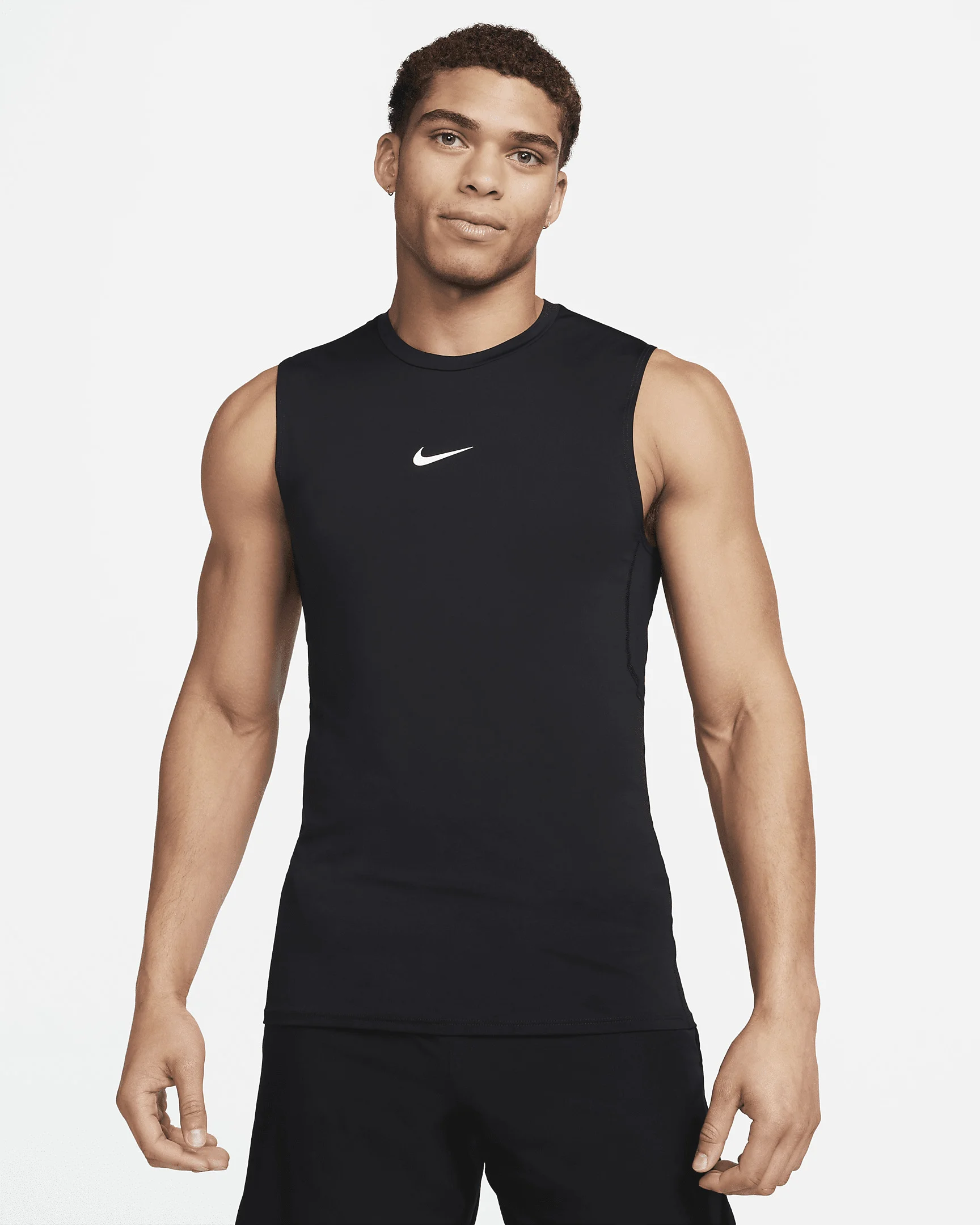 The Nike Pro collection means feeling confident doing your best no matter where you are on your workout journey. This slim-fitting sleeveless top has a smooth and stretchy feel for the sports and activities you love. Benefits - Nike Dri-FIT technology moves sweat away from your skin for quicker evaporation, helping you stay dry and comfortable. - Stretchy knit fabric gives a body-hugging feel so you can move naturally. - Flat seams feel smooth. Product Details - Straight hem design - 90% polyester/ 10% spandex - Machine wash - Imported - Shown: Black/White - Style: FB7924-010 SIZE & FIT Model is wearing size M and is 6′1″185cm Big & Tall model is wearing size 2XL and is 6'2"188cm Sm fit: sleek and tailored