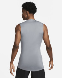 The Nike Pro collection means feeling confident no matter where you are on your workout journey. This slim-fitting sleeveless top has a smooth and stretchy feel to keep you comfortable through the sports and activities you love. Plus, our designers created a rounded hem for extra coverage when it's untucked and a more secure feel when it's tucked. Product Details - 90% polyester/ 10% spandex - Machine wash - Imported - Shown: Smoke Grey/Black - Style: FB7914-084 SIZE & FIT Model is wearing size M and is 6′1″185cm Tight fit: snug and form-fitting