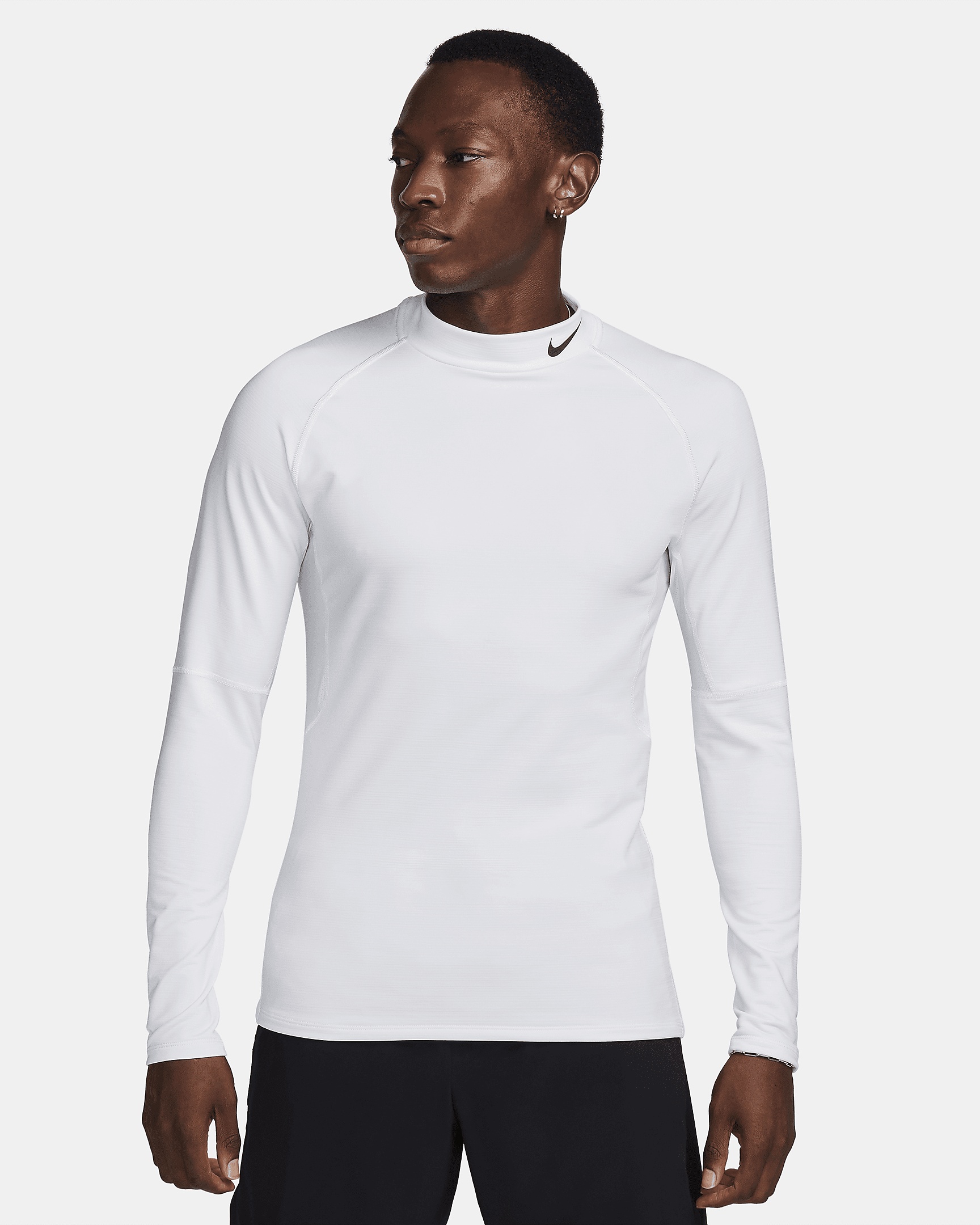 The Nike Pro collection means feeling confident wherever you are in your workout journey. This slim-fitting long-sleeve top has a smooth and stretchy feel that moves with you during exercise. Nike Dri-FIT technology moves sweat away from your skin for quicker evaporation, helping you stay dry and comfortable. Benefits - Soft French terry fabric feels warm and stretchy. - Big mesh panel on the back has a dotted design for extra breathability. Product Details - Raglan sleeve design - Body: 88% polyester/12% spandex. Panels: 92% polyester/8% spandex - Machine wash - Imported - Shown: White/Black - Style: FB8515-100 SIZE & FIT Model is wearing size M and is 5′11″180cm Sm fit: sleek and tailored