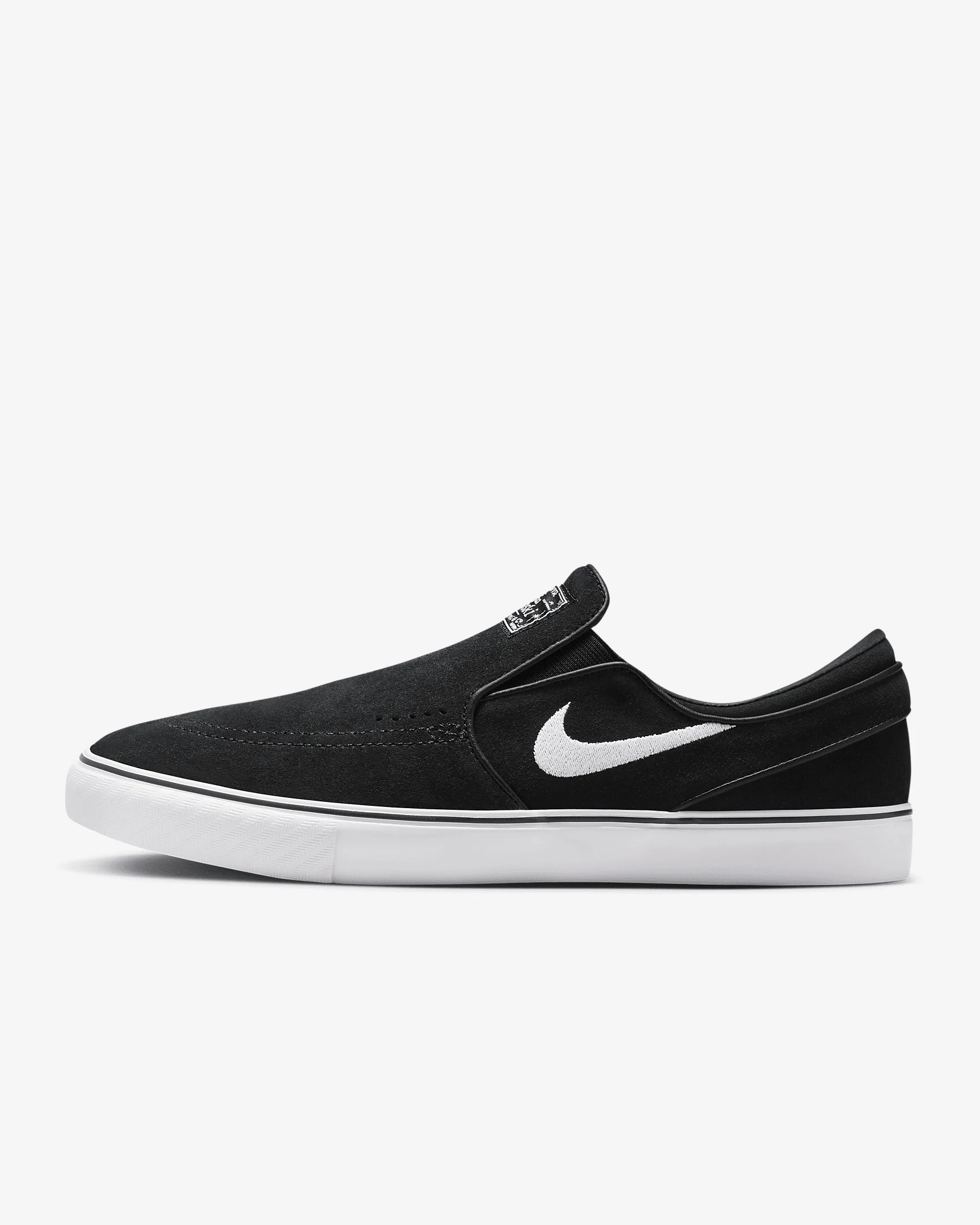 Slip into the next evolution of the Janoski+. None of the laces, all of the classic support. The skate-specific tread delivers great board feel and flick, while reengineered last gives you better fit and comfort—opening the door for next-level performance. Benefits - Suede upper is soft and durable. - Vulcanized construction fuses the sole to the upper for a flexible, broken-in feel. - Snappy and responsive, Zoom Air cushioning helps provide a quick-off-the-ground sensation. Product Details - Shown: Black/Black/Black/White - Style: FN5893-001