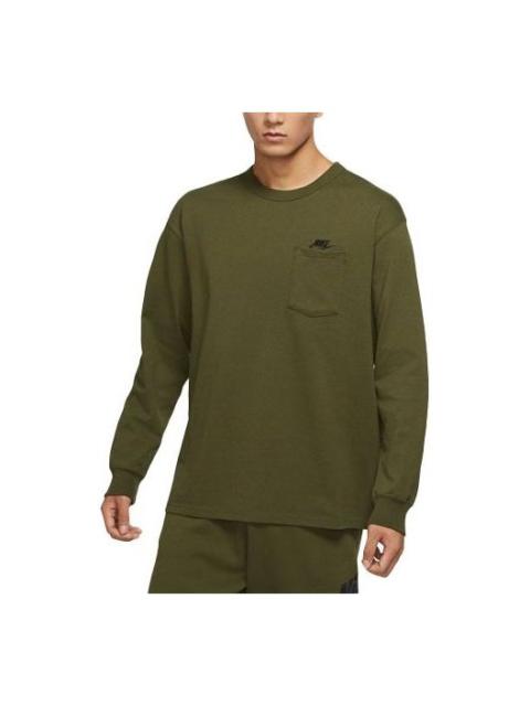 Men's Nike Solid Color Long Sleeves Round Neck Pullover Pocket Long Sleeves Green T-Shirt DD3875-326