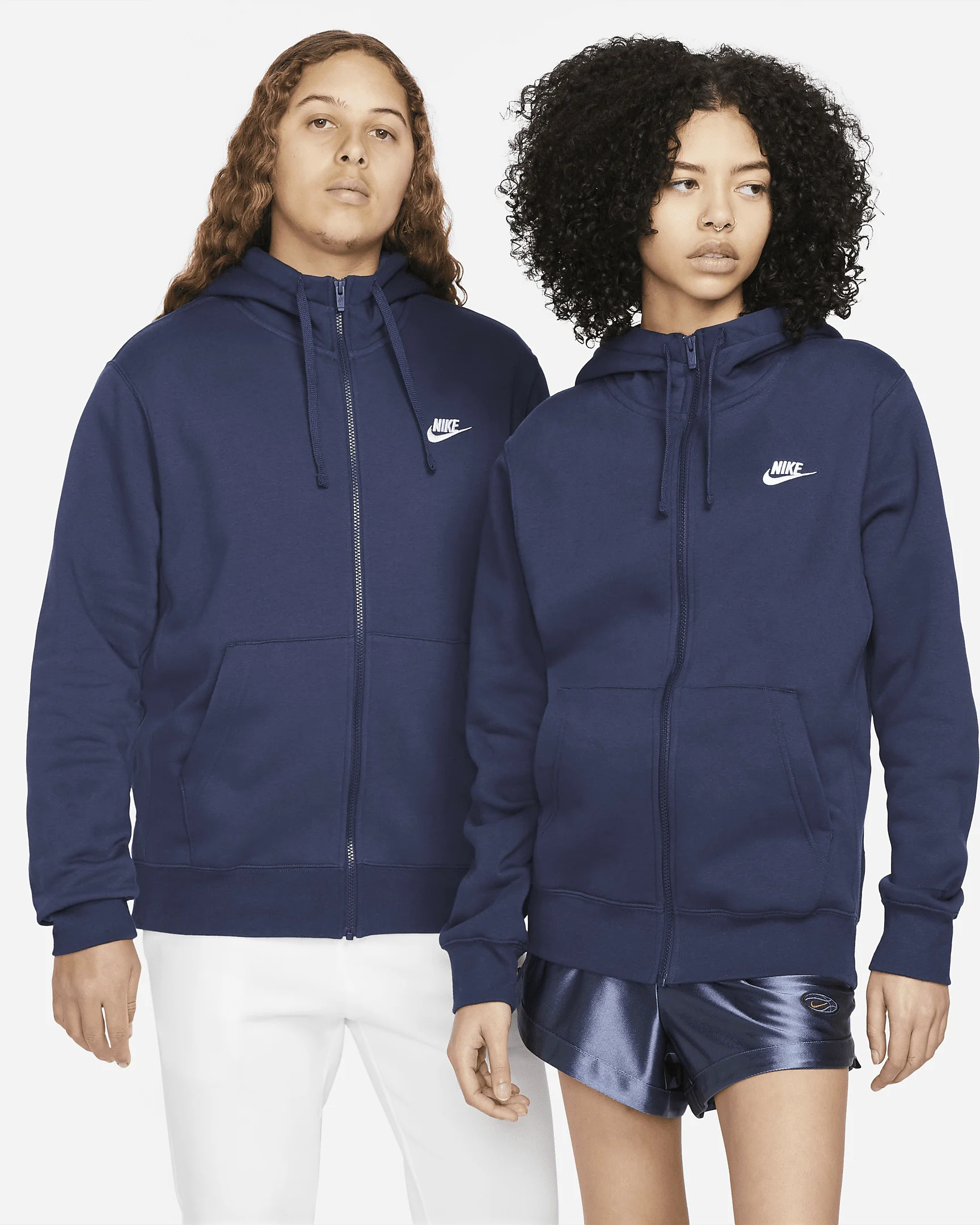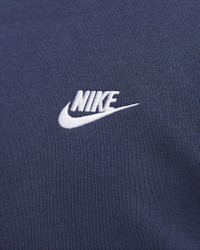 The Nike Sportswear Club Fleece Hoodie combines soft fabric with simple street style that's versatile enough for everyday use. With a full zipper that goes to the chin, it's the perfect extra layer on a chilly day. Benefits - Fabric is brushed, making it super soft and comfortable. - Full zipper allows for easy on and off. Product Details - Ribbing at sleeves and hem - Body: 80-82% cotton/18-20% polyester. Hood lining: 100% cotton. - Material percentages may vary. Check label for actual content. - Machine wash - Imported - Shown: Midnight Navy/Midnight Navy/White - Style: BV2645-410 SIZE & FIT Standard fit: easy and traditional