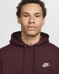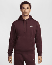A closet staple, the Nike Sportswear Club Fleece Pullover Hoodie combines classic style with the soft comfort of fleece. Product Details - Standard fit for a relaxed, easy feel - Ribbed hem and cuffs - Kangaroo pocket - Fabric: Body: 80-82% cotton/18-20% polyester. Hood lining: 100% cotton. - Machine wash - Imported - Note: Material percentages may vary depending on factory. Check label for actual content. - Shown: Burgundy Crush/Burgundy Crush/White - Style: BV2654-652 SIZE & FIT Model is wearing size M and is 6′1″185cm Big & Tall model is wearing size 3XL and is 6'1"185cm Standard fit: easy and traditional If you typically wear men's styles, please select your usual size. If you typically wear women's styles, please size down.
