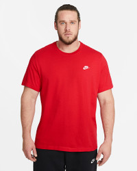 The Nike Sportswear Club T-Shirt is made with our everyday cotton fabric and a classic fit for a familiar feel right out of the bag. An embroidered Futura logo on the chest provides a signature Nike look. Benefits - The classic fit tee silhouette is relaxed through the body and hips. - Everyday cotton fabric feels soft and lightweight. Product Details - Standard fit for a relaxed, easy feel - Fabric: 100% cotton - Machine wash - Imported - Shown: University Red/White - Style: AR4997-657 SIZE & FIT Standard fit: easy and traditional