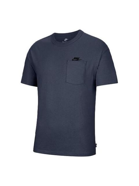 Men's Nike Sportswear Essential Pocket Embroidered Logo Sports Round Neck Short Sleeve Dark Grey T-S