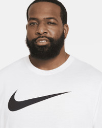 Big and bold, the Nike Sportswear T-Shirt offers soft cotton construction and a prominent graphic at the chest. Benefits - This lightweight jersey fabric has a soft feel perfect for everyday wear. - Printed details have a soft, smooth feel. Product Details - Standard fit for a relaxed, easy feel - 50-100% cotton/0-50% polyester - Material percentages may vary. Check label for actual content. - Machine wash - Imported - Shown: White/Black - Style: DC5094-100 SIZE & FIT Standard fit: easy and traditional