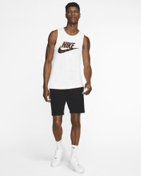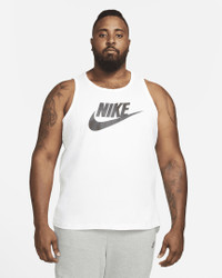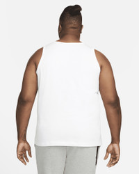 The Nike Sportswear Tank sets you up with a soft cotton jersey feel and bold branding at the chest for warm-weather comfort and style. Product Details - Standard fit for relaxed, easy feel - Fabric: 80-100% cotton/0-20% polyester - Machine wash - Imported - Note: Material percentages may vary depending on color. Check label for actual content. - Shown: White/Black - Style: AR4991-101 SIZE & FIT Standard fit: easy and traditional