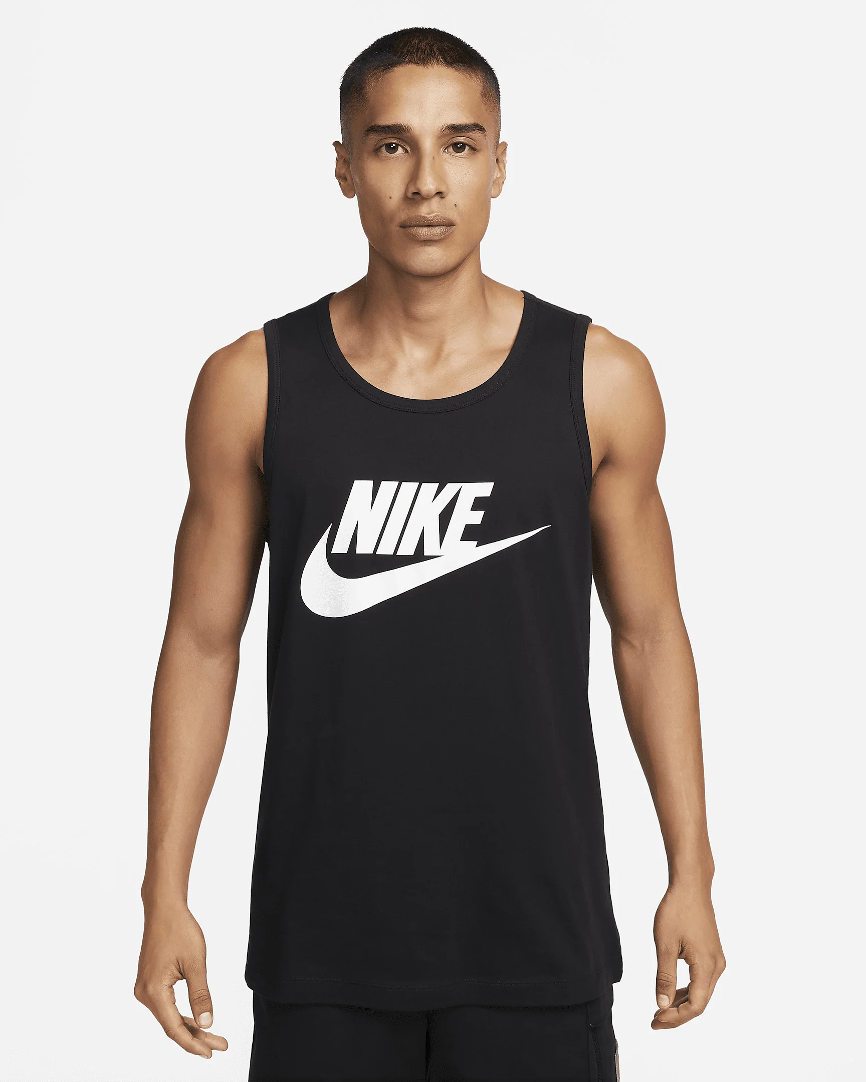 The Nike Sportswear Tank sets you up with a soft cotton jersey feel and bold branding at the chest for warm-weather comfort and style. Product Details - Standard fit for relaxed, easy feel - Fabric: 80-100% cotton/0-20% polyester - Machine wash - Imported - Note: Material percentages may vary depending on color. Check label for actual content. - Shown: Black/White - Style: AR4991-013 SIZE & FIT Model is wearing size M and is 6′0″183cm Standard fit: easy and traditional