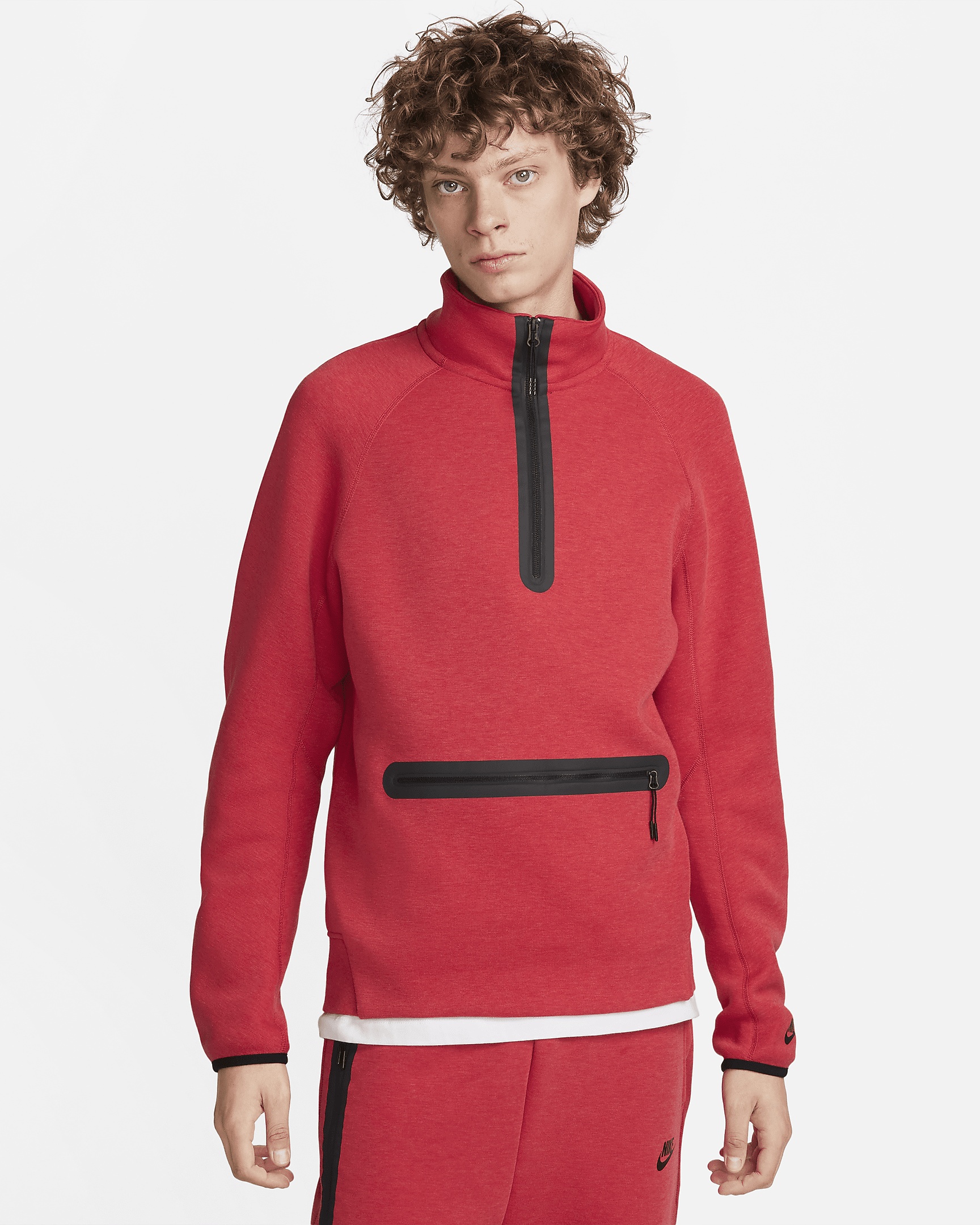 Ready for a night on the town or an evening in, this sleek sweatshirt injects a dose of polished comfort into your daily wardrobe. Our premium, smooth-on-both-sides fleece feels warmer and softer than ever, while keeping the same lightweight build you love. The relaxed fit lets you throw it on over a tee and under a jacket when the conditions call for it. Benefits - Designed to feel relaxed through the shoulders, chest and body for an athletic fit you can layer. - Zippered closure and front pocket feature a taped surround for reinforcement and that signature Tech Fleece DNA. - Paneled construction through the sleeves and body adds mobility and comfort while you move. Product Details - Thin elastic cuffs - Stand collar - Nike Futura logo at left cuff - Body: 53% cotton/47% polyester. Pocket Bag Palm Side: 69% cotton/31% polyester. Pocket Bag Knuckle Side: 100% cotton. - Machine wash - Imported - Shown: Light University Red Heather/Black - Style: FB7998-672 SIZE & FIT Model is wearing size M and is 6′1″185cm Standard fit: easy and traditional If you typically wear men's styles, please select your usual size. If you typically wear women's styles, please size down.