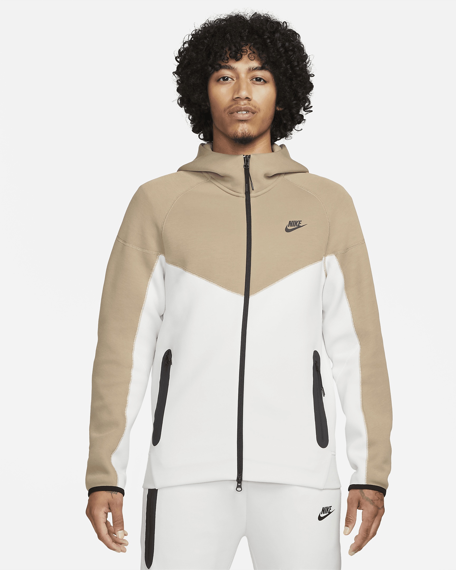 Blending 2 of our most iconic looks, this full-zip hoodie draws design inspiration from our timeless Windrunner jacket as well as our Tech Fleece jacket. It's designed to feel relaxed through the shoulders, chest and body for an athletic fit you can layer. Our premium, smooth-on-both-sides fleece feels warmer and softer than ever, while keeping the same lightweight build you love. Benefits - Subtle Windrunner lines nod to the classic running jacket from the late '70s. - Dropped shoulders and paneled sleeve design helps you move with less restriction. - Partial elastic hem helps seal in your warmth and hold the hoodie in place when you move. - Zippered hand pockets feature the signature Tech Fleece taped pocket surround. - Full-zip design with a scuba hood lets you adjust your style and coverage. Product Details - Nike Futura logo at left chest - Body/Hood Lining: 53% cotton/47% polyester. Pocket Bag Knuckle Side: 100% cotton. - Machine wash - Imported - Shown: Summit White/Khaki/Black - Style: FB7921-121 SIZE & FIT Model is wearing size M and is 6′1″185cm Standard fit: easy and traditional If you typically wear men's styles, please select your usual size. If you typically wear women's styles, please size down.