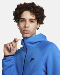 Blending 2 of our most iconic looks, this full-zip hoodie draws design inspiration from our timeless Windrunner jacket as well as our Tech Fleece jacket. It's designed to feel relaxed through the shoulders, chest and body for an athletic fit you can layer. Our premium, smooth-on-both-sides fleece feels warmer and softer than ever, while keeping the same lightweight build you love. Benefits - Subtle Windrunner lines nod to the classic running jacket from the late '70s. - Dropped shoulders and paneled sleeve design helps you move with less restriction. - Partial elastic hem helps seal in your warmth and hold the hoodie in place when you move. - Zippered hand pockets feature the signature Tech Fleece taped pocket surround. - Full-zip design with a scuba hood lets you adjust your style and coverage. Product Details - Nike Futura logo at left chest - Body/Hood Lining: 53% cotton/47% polyester. Pocket Bag Knuckle Side: 100% cotton. - Machine wash - Imported - Shown: Light Photo Blue/Black - Style: FB7921-435 SIZE & FIT Model is wearing size M and is 6′2″188cm Big & Tall model is wearing size 3XL and is 6'2"188cm Standard fit: easy and traditional If you typically wear men's styles, please select your usual size. If you typically wear women's styles, please size down.