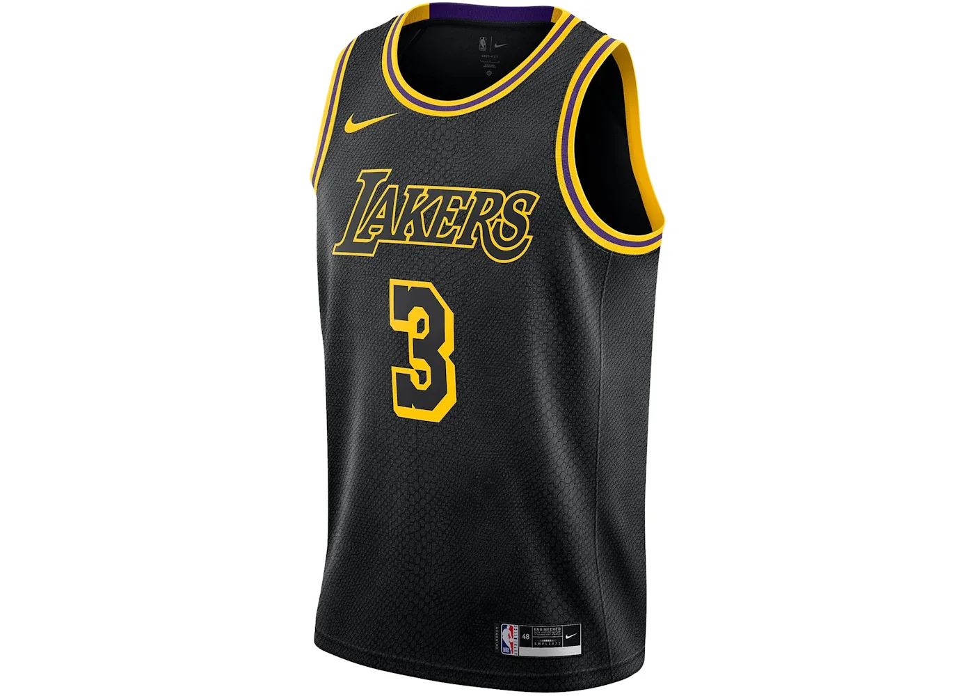 The Nike NBA Lakers Anthony Davis Swingman Jersey Black offers an elegant, modern look. Featuring Dri-FIT technology and durable double-knit fabric, it combines style and performance, making it perfect for true Lakers fans and basketball enthusiasts. The black NBA Lakers Anthony Davis Swingman Jersey by Nike stands out with its black and gold color scheme, symbolizing the team's storied legacy. Made from premium double-knit fabric, it includes Dri-FIT technology to wick away sweat, providing comfort on hot days. Nike, a leader in sportswear since 1964, expertly combines fashion and functionality in this jersey, celebrating both the Lakers' heritage and trendy athletic wear. The double-knit fabric ensures durability and a comfortable fit, perfect for game days and casual wear. Additionally, the sleek black design with gold accents pays homage to the Lakers' iconic colors, making it a stylish choice for fans. The experts at StockX love the Nike NBA Lakers Anthony Davis Swingman Jersey Black for its Dri-FIT technology, which efficiently wicks away moisture, keeping the wearer cool and dry. The retail price for this piece when it debuted was $110. - Season SS23 - Color Black - Style DJ1433-010 - Retail Price 110 - Featured false - Uploaded By LL
