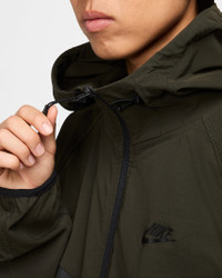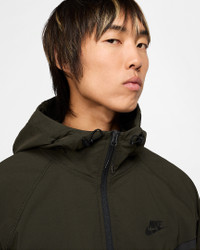Crafted with stretchy, breathable material, the Nike Tech Woven Jacket offers you ease of movement and adjustable details. Bungee cords with cord locks create a custom fit at the hem and hood. Benefits - Lightweight fabric moves sweat away from your skin for quick evaporation, helping you stay dry and comfortable. - Loose fit through the body allows a full range of movement. - Articulated elbows are made with movement in mind, and add a distinct Nike Tech aesthetic. - Hood and stand collar offer coverage from the elements. - Two-way zipper lets you adjust your fit. - Bungee cords with cord locks create a custom fit at the hem and hood. Product Details - Nike Futura logo - Body: 94% nylon/6% spandex. Pockets: 100% polyester. - Machine wash - Imported - Shown: Sequoia/Sequoia/Black - Style: HM7151-355 SIZE & FIT Model is wearing size M and is 6′0″183cm Loose fit: roomy and relaxed Fits large; we recommend ordering a size down