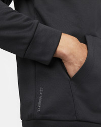 Bring the heat to your cold weather workout with the Therma Top. Supersoft fleece keeps the comfort levels high while you take your exercise routine to the next level. A relaxed feel means you can stretch and bench without anything holding you back. Benefits - Nike Therma-FIT technology helps manage your body’s natural heat to help keep you warm in cold-weather conditions. - Fleece feels supersoft and has a lightly fuzzy feel inside so you can stay warm and comfy. - Zippered pocket on the left arm lets you stash a key or card. Product Details - Standard fit for a relaxed, easy feel - Full-length front zipper - Woven zipper pulls - Front pockets - Printed back neck tape - 3-panel hood - Tipped drawcord with metal grommets - Embroidered Swoosh graphic - 100% polyester - Machine wash - Imported - Shown: Black/Black/White - Style: DQ4830-010 SIZE & FIT Model is wearing size L and is 6'2"188cm Big & Tall model is wearing size 2XL and is 6'5"196cm Standard fit: easy and traditional