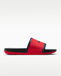 Rep the Los Angeles Angels all the way down to your feet in these Offcourt slides. A cushioned synthetic leather strap features your team's logo, while an innovative foam midsole makes this slide so comfy, you’ll never want to take it off. Benefits - Contoured footbed cradles your foot while the dual-density foam adds cushioning and stability. - Soft, plush fabric lines the synthetic leather strap to add comfort. Product Details - Shown: University Red/Dark Smoke Grey/Midnight Navy - Style: FN2649-600