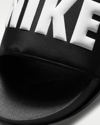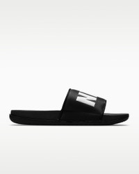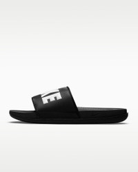 These slides are designed to help you relax and recharge. Innovative dual-layered foam underfoot pairs with a plush strap to bring the comfort, while the iconic AF1 pivot circle pattern on the outsole and block letter branding casually nod to heritage hoops. What are you waiting for, get lounging. Product Details - Shown: Black/Black/White - Style: BQ4639-012 SIZE & FIT Fits small; we recommend ordering a half size up