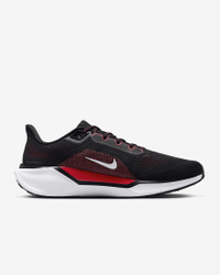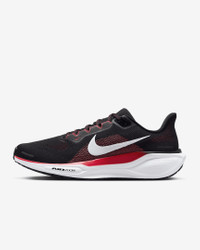 Responsive cushioning in the Pegasus provides an energized ride for everyday road running. Experience lighter-weight energy return with dual Air Zoom units and a ReactX foam midsole. Plus, improved engineered mesh on the upper decreases weight and increases breathability. Benefits - Upgraded breathable engineered mesh upper - ReactX foam midsole surrounds forefoot and heel Air Zoom units for an energized ride. - Signature waffle-inspired rubber outsole for traction and flexibility - Plush collar tongue and sockliner for a secure and comfortable fit - What's new? All-new ReactX foam midsole is 13% more responsive than previous React technology. - Crafted for performance and planet, ReactX foam is engineered to reduce its carbon footprint by at least 43% in a pair of midsoles due to reduced manufacturing process energy compared to prior React foam. The carbon footprint of ReactX is based on cradle-to-gate assessment reviewed by PRe Sustainability B.V and Intertek China. Other midsole components such as airbags, plates or other foam formulations were not considered. Product Details - Weight: Approx. 297 g/10.4 oz (Men's US 10) - Heel-to-toe drop: 10 mm - MR-10 Last - Our best, most consistent fit (same as Pegasus 40) - Not intended for use as Personal Protective Equipment (PPE) - Shown: Black/Fire Red/White - Style: FD2722-003