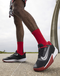 Step onto the floor with full confidence, and take your best shot in the Nike Precision 7—a game-ready basketball shoe for everyone. Made with Nike EasyOn technology, it has a collapsible heel and large midfoot strap to help you tighten the laces and secure the fit using one hand. Fasten the strap in a matter of seconds, check in and make the plays that swing the outcome in your favor. Product Details - No-sew overlays - Molded Swoosh logo - Shown: Black/University Red/White - Style: FN0324-001