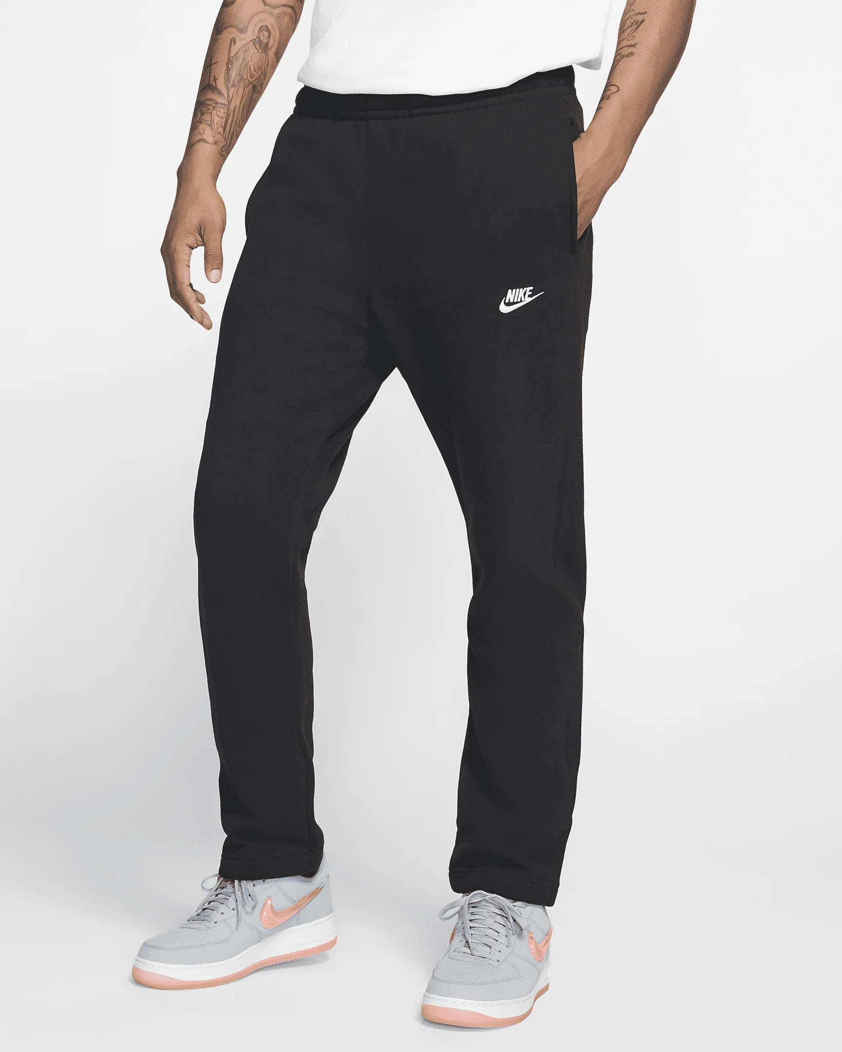 A closet staple, the Nike Sportswear Club Fleece Pants combine classic style with the soft comfort of fleece for an elevated look that you really can wear every day. Product Details - Body/side pocket palm side: 80-82% cotton/18-20% polyester. Side pocket knuckle side/back pocket: 100% cotton. - Material percentages may vary depending on color. Check label for actual content. - Machine wash - Imported - Shown: Black/Black/White - Style: BV2707-010 SIZE & FIT Standard fit: easy and traditional Fits small; we recommend ordering a size up<br>