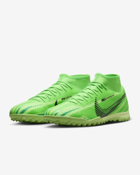 Cristiano Ronaldo wouldn’t be the competitor he is without setbacks. Made to help take your game to the next level, this version of the Superfly 9 Academy has disruptive ripples that signify the sagas we endure while energetic greens represent the breakthrough that arises when we overcome obstacles. You also get an Air Zoom unit, so you can put the pedal down in the waning minutes of a match—when it matters most. Product Details - For use on shorter, synthetic surfaces - Cushioned insole - Shown: Green Strike/Stadium Green/Black - Style: FJ7199-300 SIZE & FIT Contoured: designed for a contoured fit, enabng a barefoot boot-to-ball sensation and enhanced lockdown Snug fit; if you prefer a sghtly looser fit, we recommend ordering a half-size up