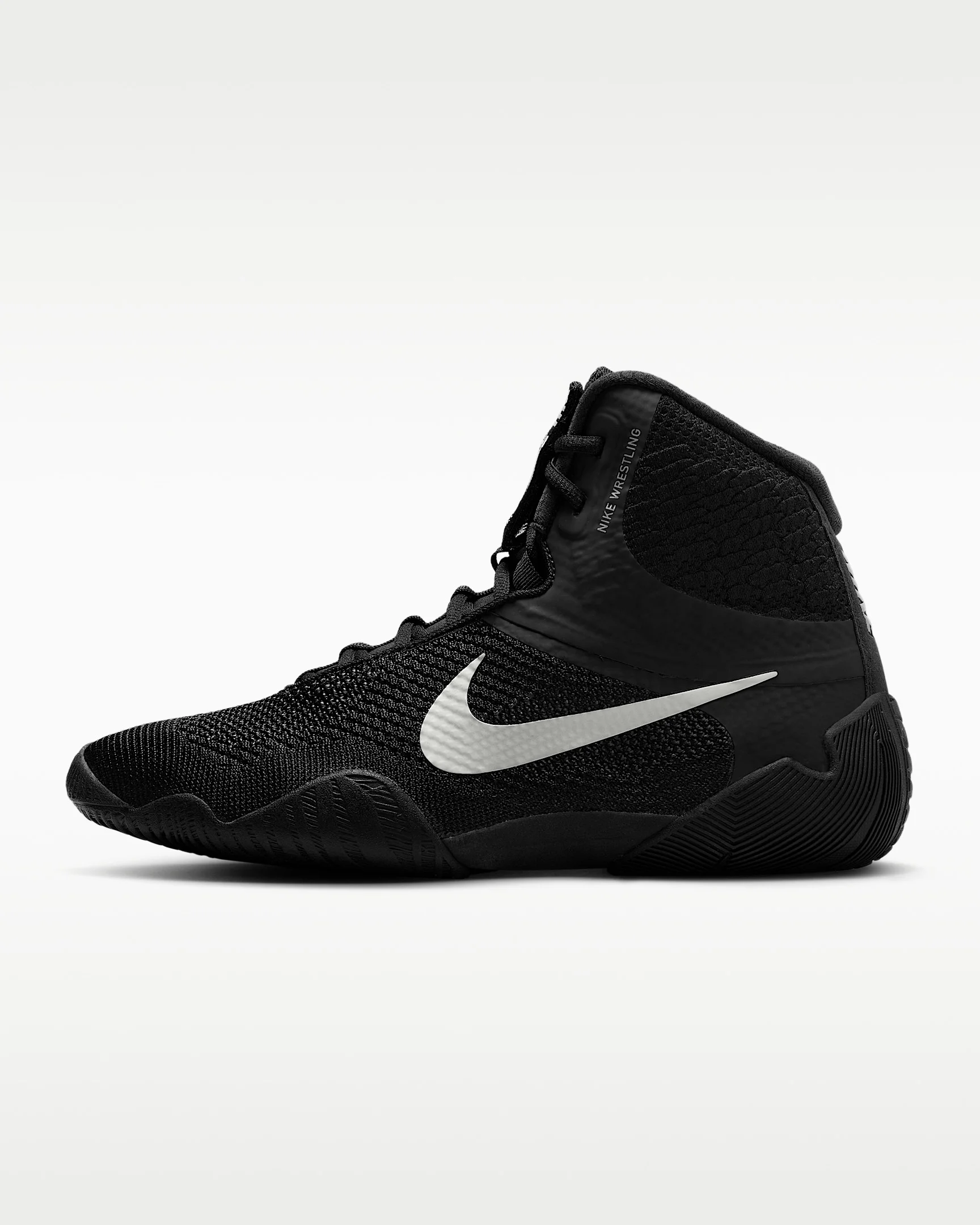 The Nike Tawa is quick and lightweight but still durable, supportive and breathable. The zonal Flyknit and rubber-wrapped sole give you exactly that, along with everything needed for quick shoots, sweeps and rotational movements during practice and competition. Benefits - Flyknit in the upper is a super lightweight, breathable material that hugs your foot and helps keep it in place. - Zonal construction provides flexible support where you need it, while strategically placed ventilation zones offer cooling and lightweight performance. - NikeSkin offers a barefoot-like feel. - Lace garage helps reduce the risk of lace failure and keeps them out of the way. - Split sole provides added flexibility for all wrestling movements. - Durable rubber tread wraps the sole and sidewalls for enhanced grip from all angles. Product Details - Nike Wrestling branding - High-top design - Shown: Black/Black/Metallic Silver - Style: CI2952-001 SIZE & FIT Fits small; we recommend ordering a half size up