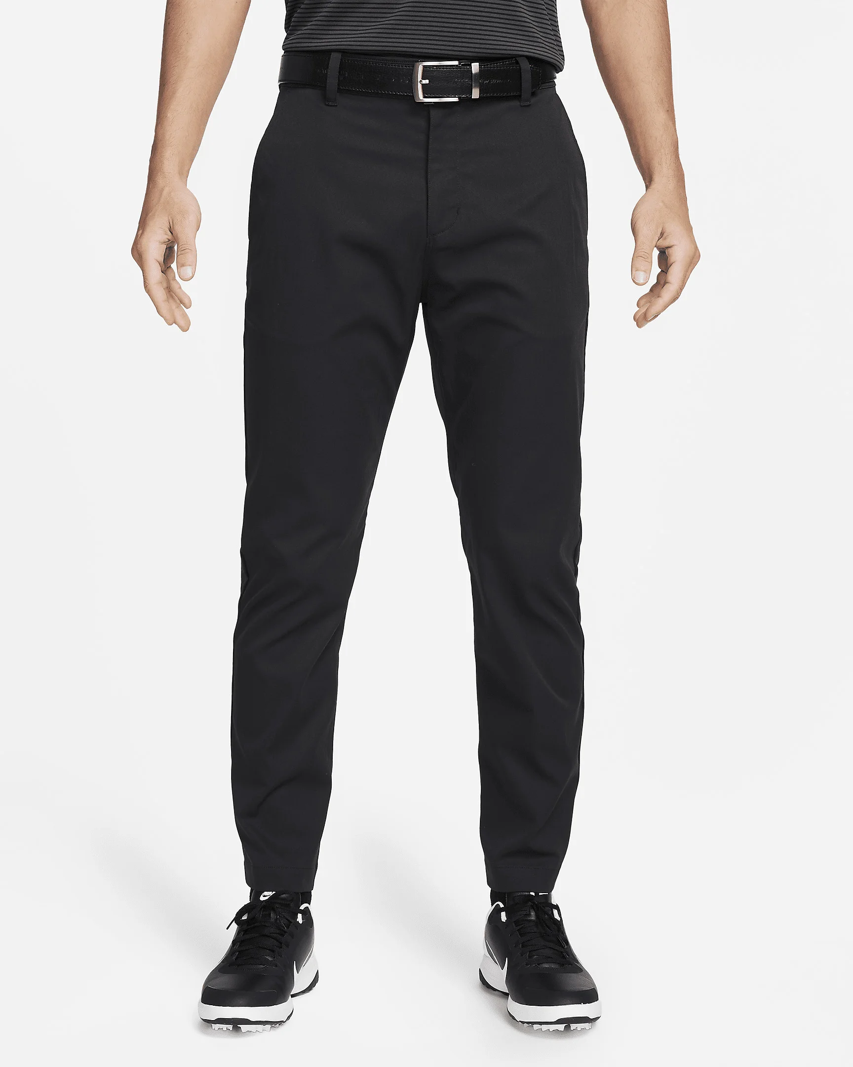 From the range to the course to the clubhouse, the Nike Tour chino pants provide a clean look and comfortable fit you can wear just about anywhere. They're designed to let you feel confident through each swing thanks to their relaxed-yet-streamlined fit and stretchy, sweat-wicking fabric. Got a scorecard, yardage book and tees? There's plenty of pockets for your essentials to make it through all 18. Benefits - Stretch-woven fabric lets you get the most out of your swing. - Water-repellent finish helps shed water in wet conditions. - Elastic waistband with a snap-hook-and-bar closure provides a snug fit. - 4 pockets help store golf essentials like a scorecard, pen and yardage book. Product Details - Front zipper - Body/Pocket bags: 100% polyester - Machine wash - Imported - Shown: Black/Black - Style: FD5619-010 SIZE & FIT Model is wearing size 3232 and is 5′11″180cm Standard fit: easy and traditional