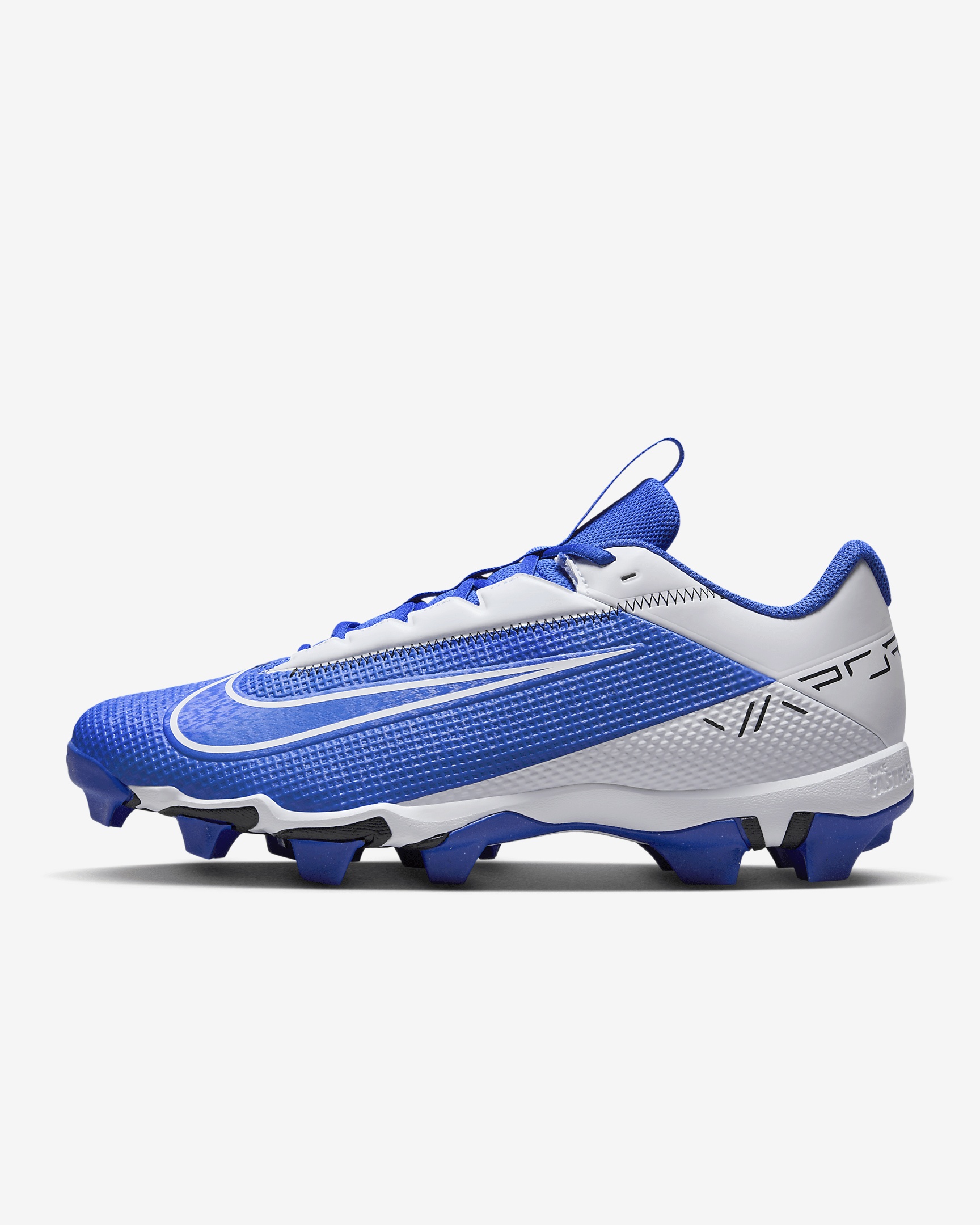 The Nike Vapor Edge Shark 2 helps you smoke your competition with speed, power and finesse while feeling fully stabilized and secure. Rubber traction and a synthetic material add support while Nike Fastflex technology lets you move with ease while running and shifting gears. Benefits - We revamped the upper with molded elements and texture that reinforce around the heel. It gives you more support when running off the line of scrimmage or making a play on your opponent. - Nike Fastflex technology lets you move freely when cutting and running. - Synthetic material on the upper is durable and easy to clean. - Rubber cleats create grip and traction. - Perforations on the sides add breathability. Product Details - Shown: Hyper Royal/White/Black - Style: DH5088-400