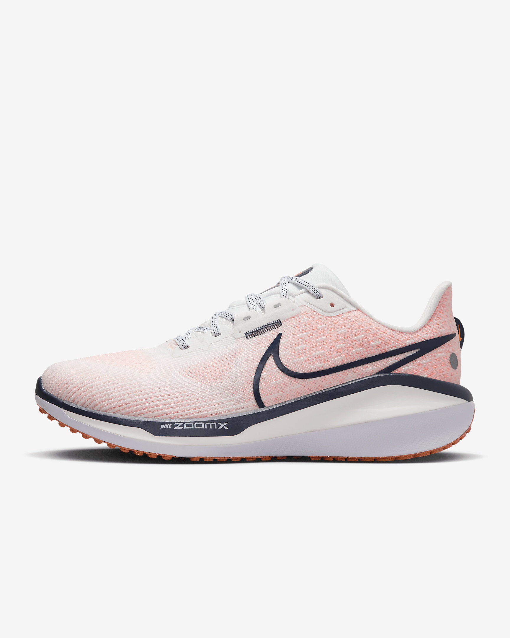 Maximum cushioning provides a comfortable ride for everyday runs. Experience enhanced comfort in this latest version with a dual-density midsole made with a combination of ZoomX underfoot and Cushlon 3.0 foam throughout. Plus, a new engineered mesh upper offers more breathability. Benefits - New engineered mesh upper for soft breathability - Dual-density midsole with ZoomX foam stacked on top of Cushlon 3.0 foam for a comfortable ride - Redesigned waffle-inspired outsole with break points for a smooth, flexible stride - Plush tongue and lining for a comfortably snug feel - What’s New? New stacked foam midsole with premium ZoomX on top of Cushlon 3.0 foam to amplify cushioned comfort. Product Details - Weight: Approx. 298g/ 10.5oz (Men's US 10) - Heel-to-toe drop: 10mm - MR-10 Last - Our best, most consistent fit - Not intended for use as Personal Protective Equipment (PPE) - Shown: Summit White/Total Orange/White/Thunder Blue - Style: FB1309-102